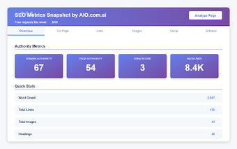 SEO Metrics Snapshot, Chrome tarayıcı eklentisi olarak, web siteleri için kapsamlı bir SEO analizi sunar. Kullanıcılar, Domain Authority ve Page Authority gibi kritik metriklere anında erişim sağlayabilir, ayrıca tam sayfa SEO denetimleri gerçekleştirebilir. Bu araç, profesyonel düzeydeki SEO araçlarını kullanıcıların parmaklarının ucuna getiriyor ve SEO süreçlerini optimize etmeyi amaçlıyor.